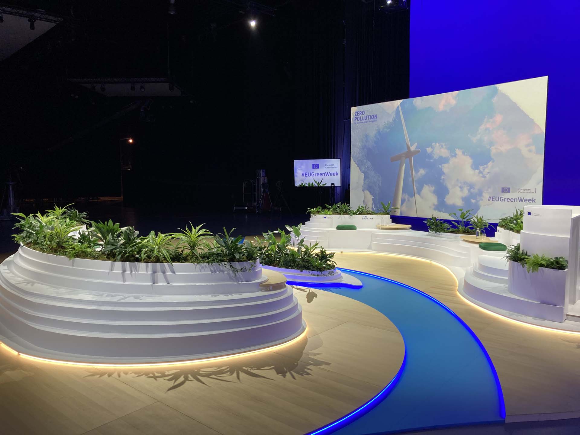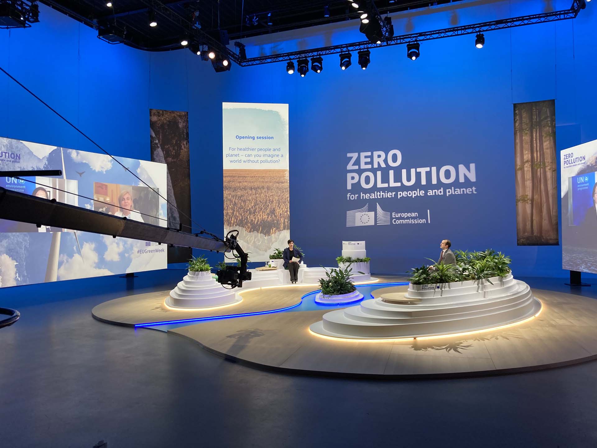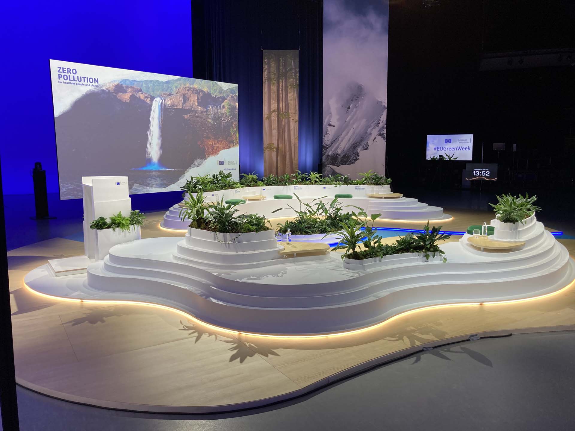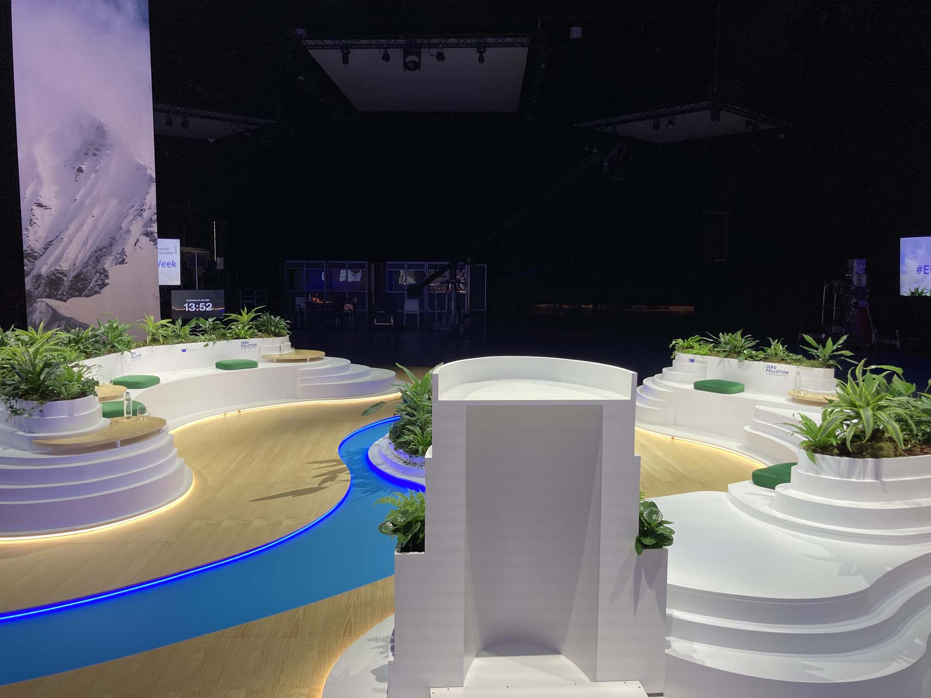 Taking cues from DG Env's distinctive visual identity, MANYTHINK created a minimalist scenography approach customized to meet the event's needs and current health standards. The graphic design and imagery were optimized for small screens to have a powerful impact while making resource utilization efficient.