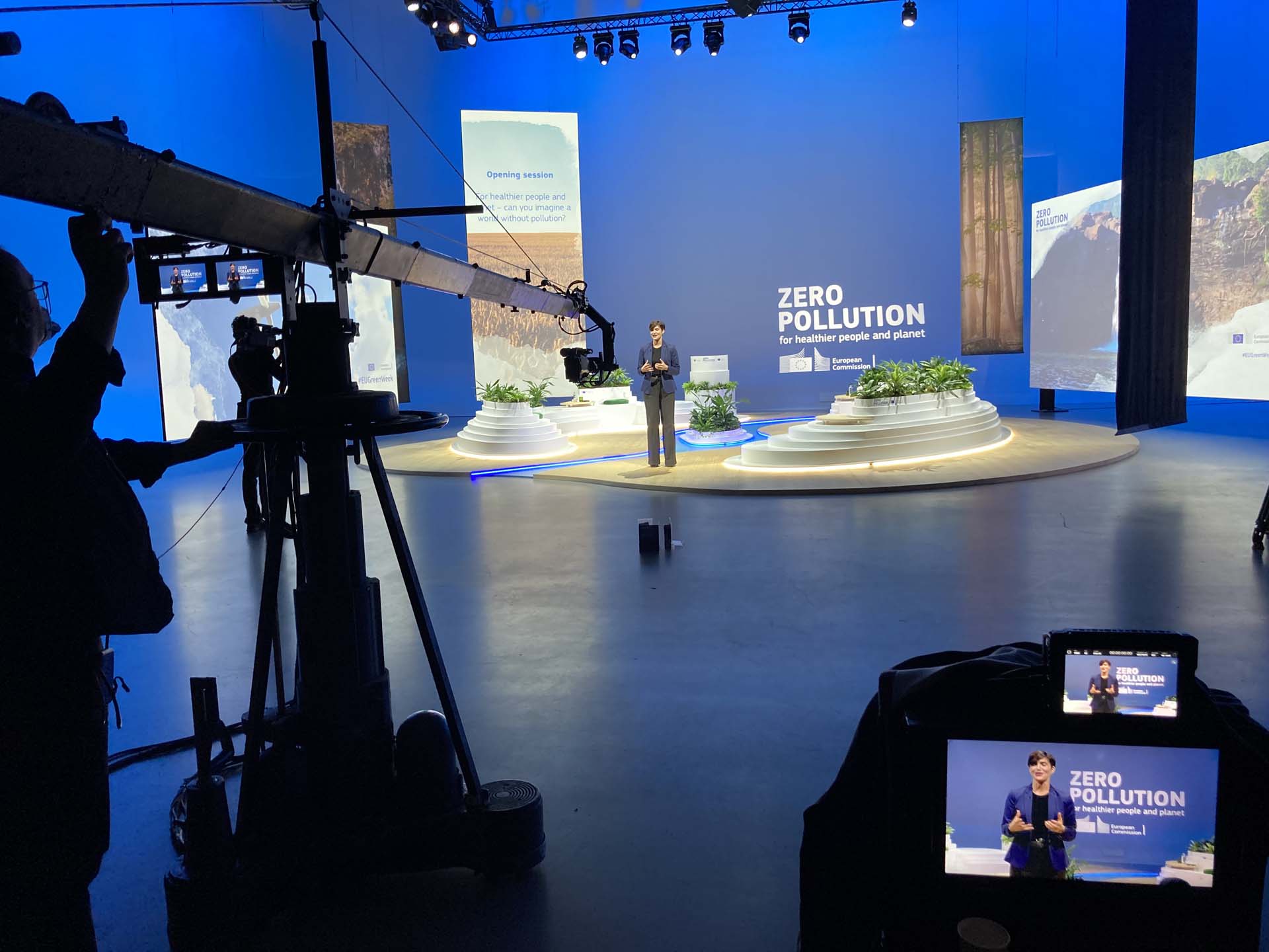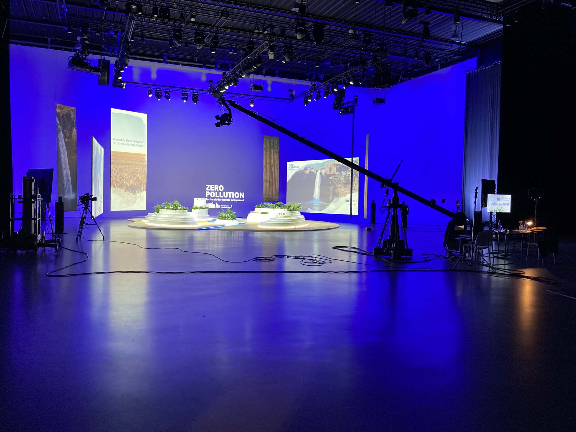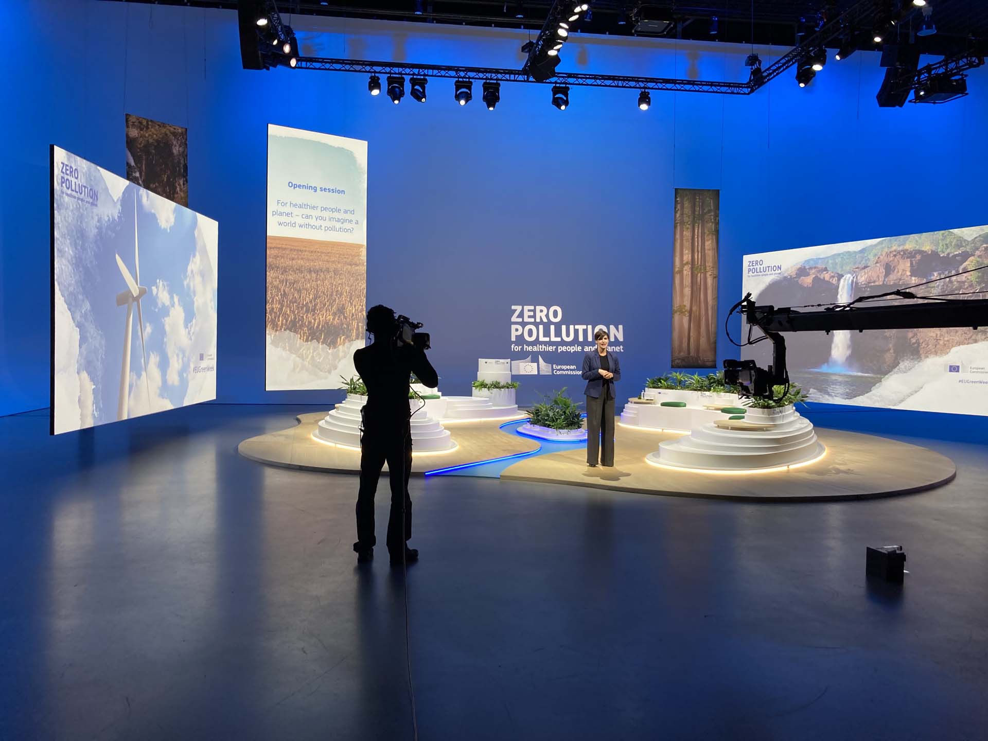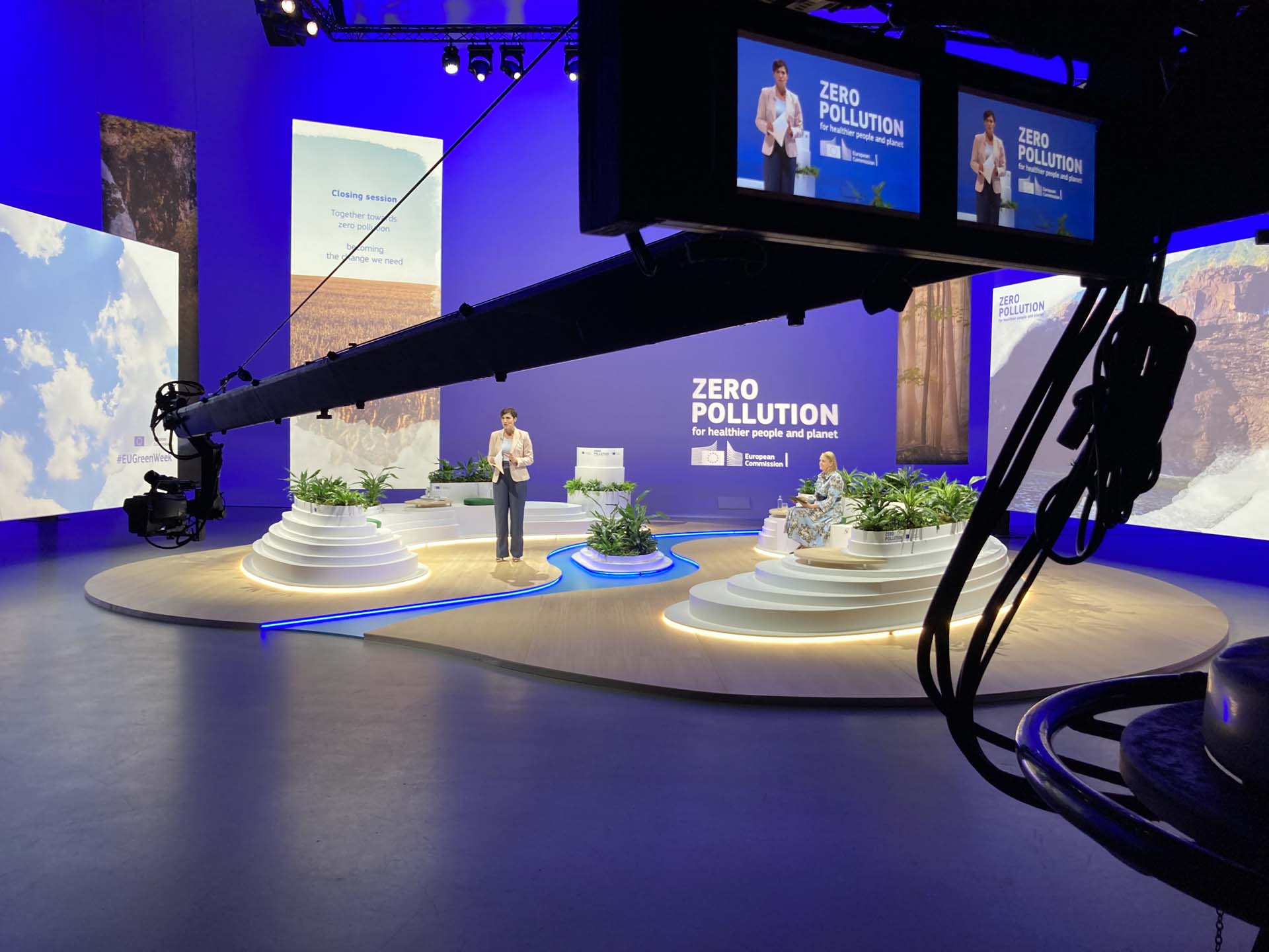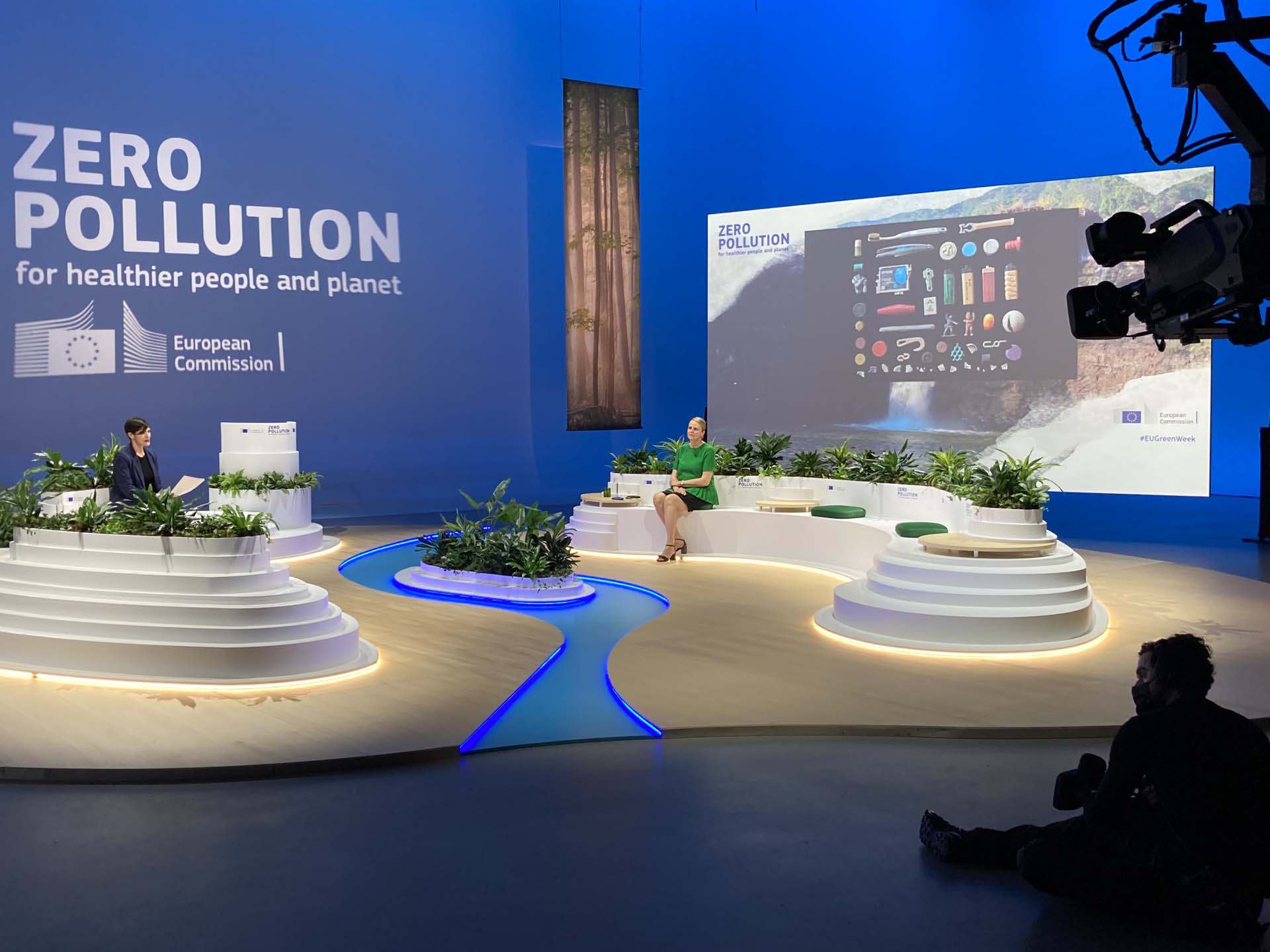 Taking cues from DG Env's distinctive visual identity, MANYTHINK created a minimalist scenography approach customized to meet the event's needs and current health standards. The graphic design and imagery were optimized for small screens to have a powerful impact while making resource utilization efficient.