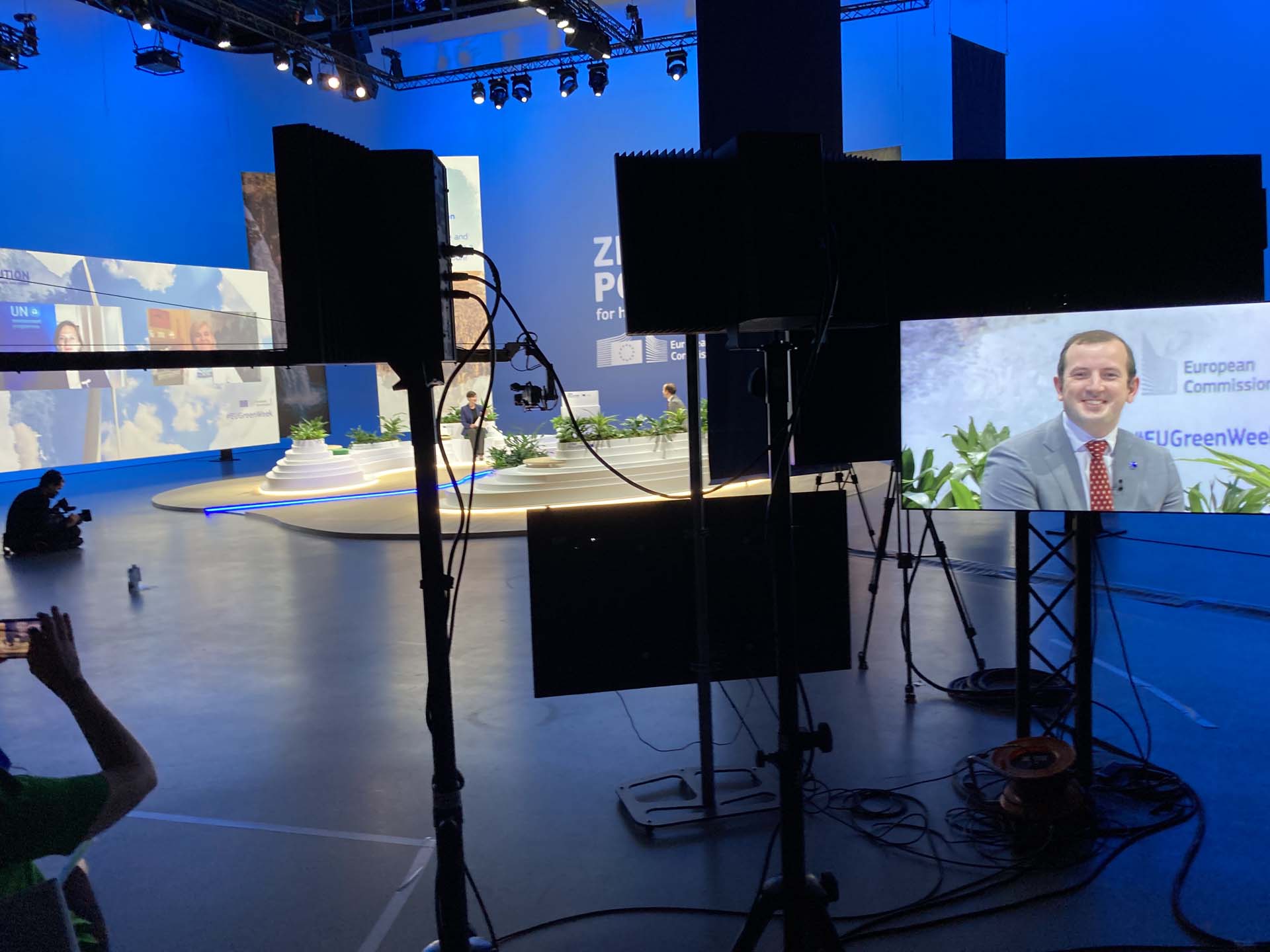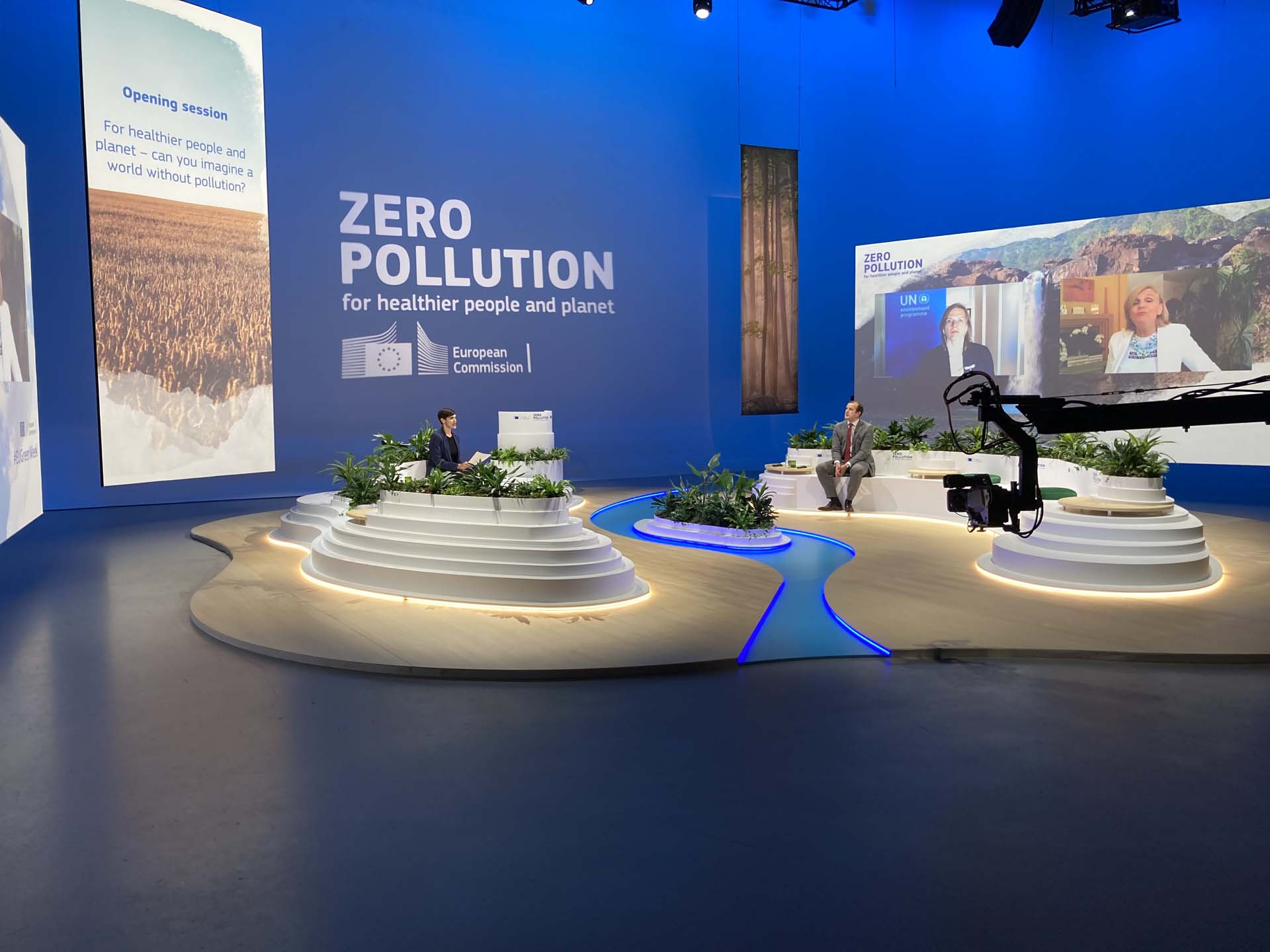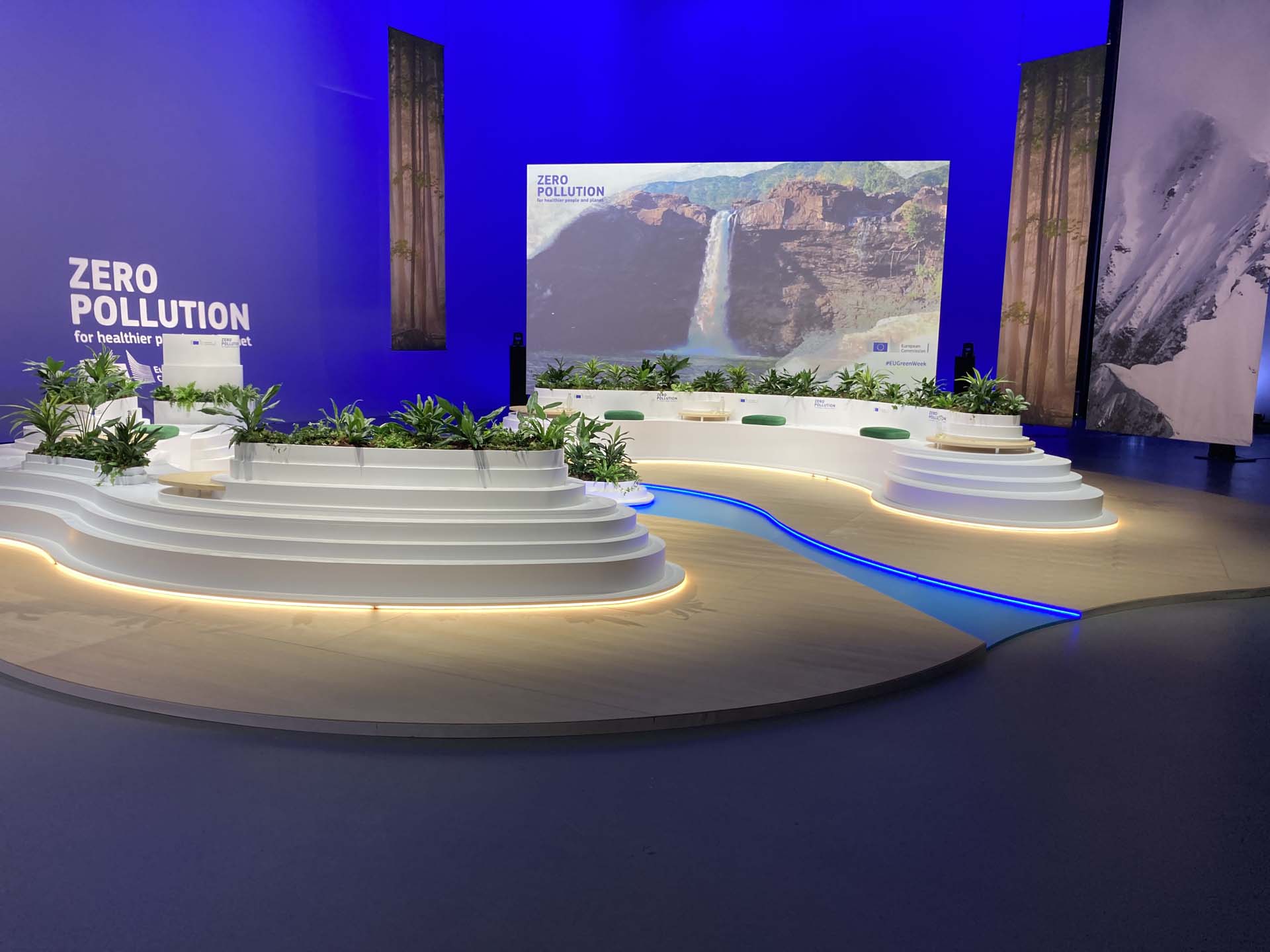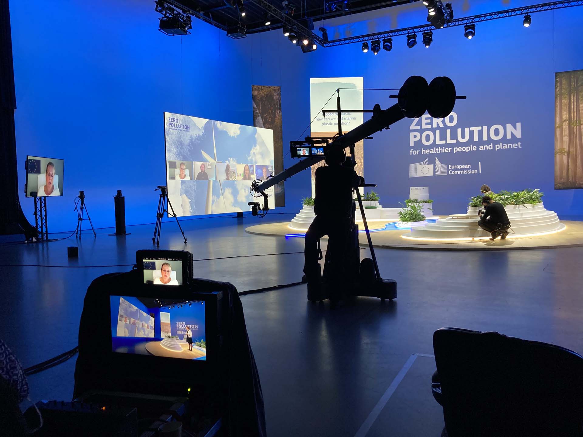Taking cues from DG Env's distinctive visual identity, MANYTHINK created a minimalist scenography approach customized to meet the event's needs and current health standards. The graphic design and imagery were optimized for small screens to have a powerful impact while making resource utilization efficient.
