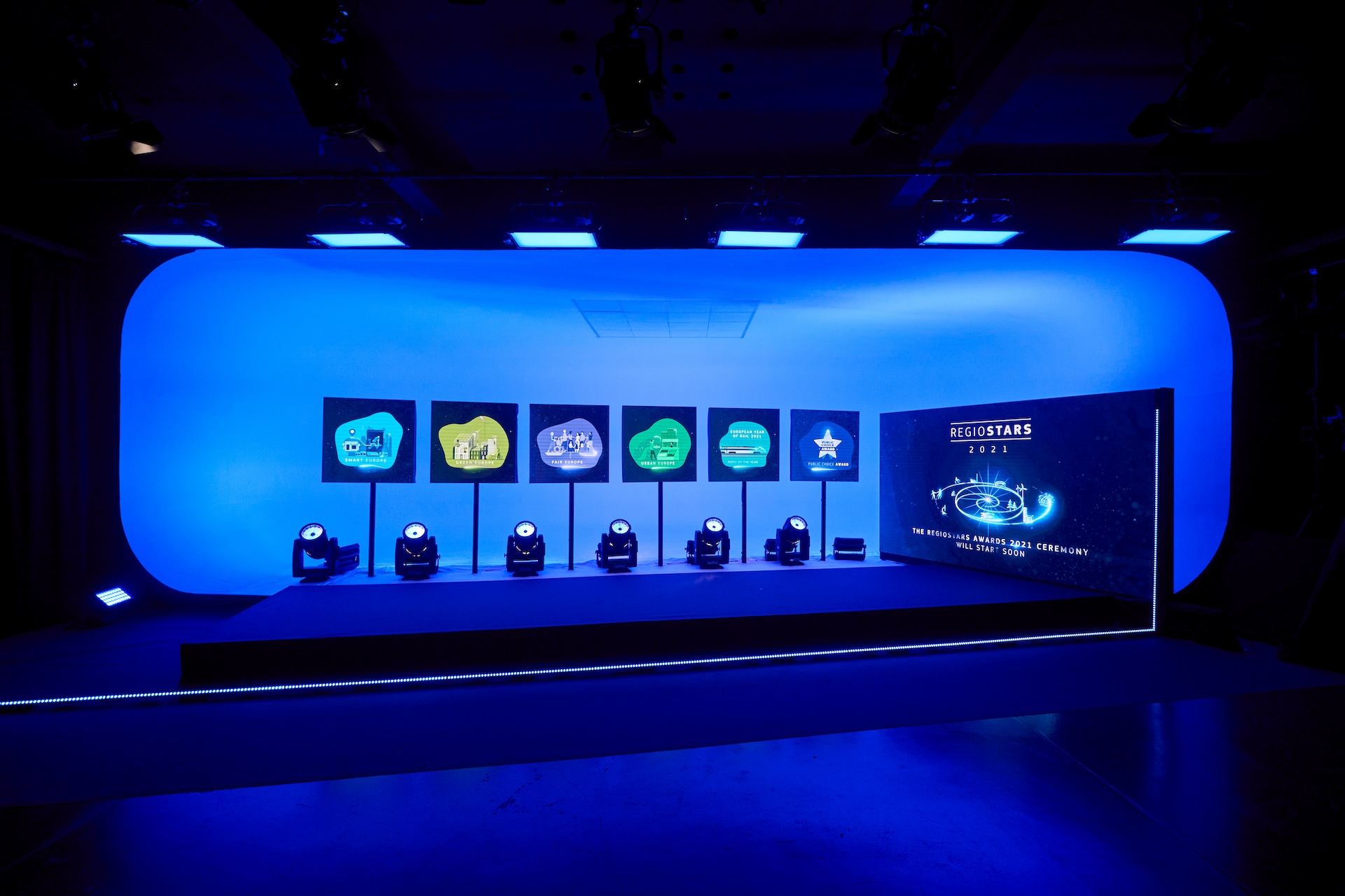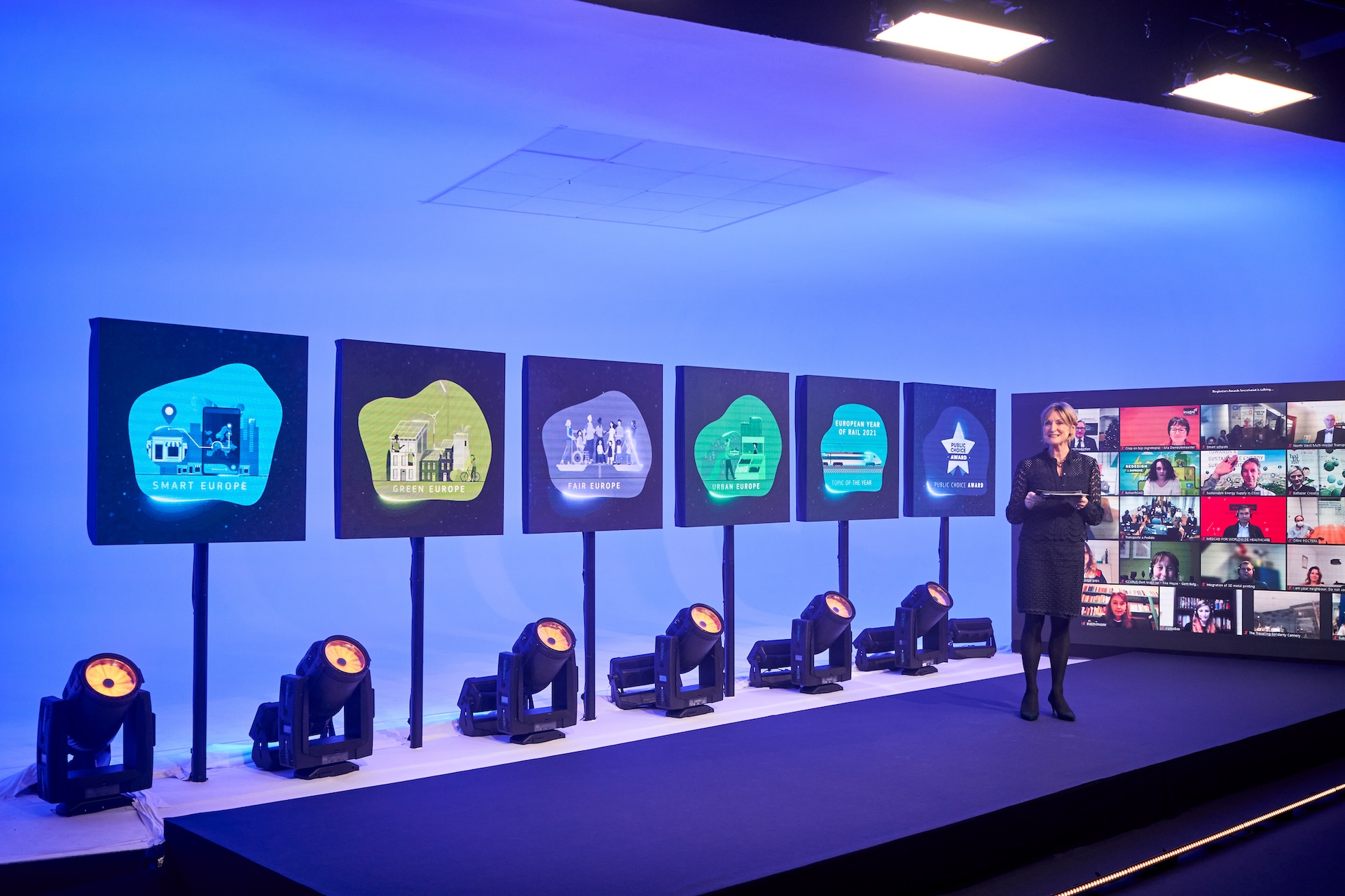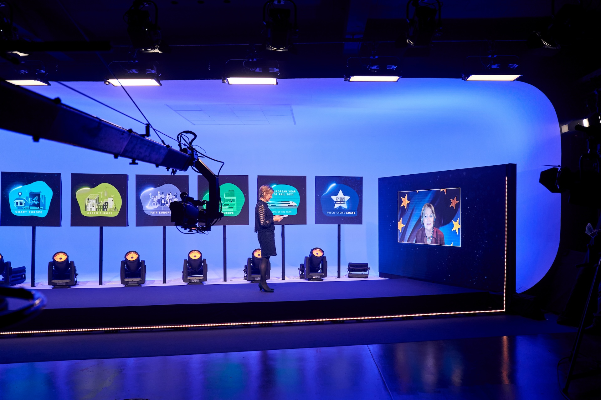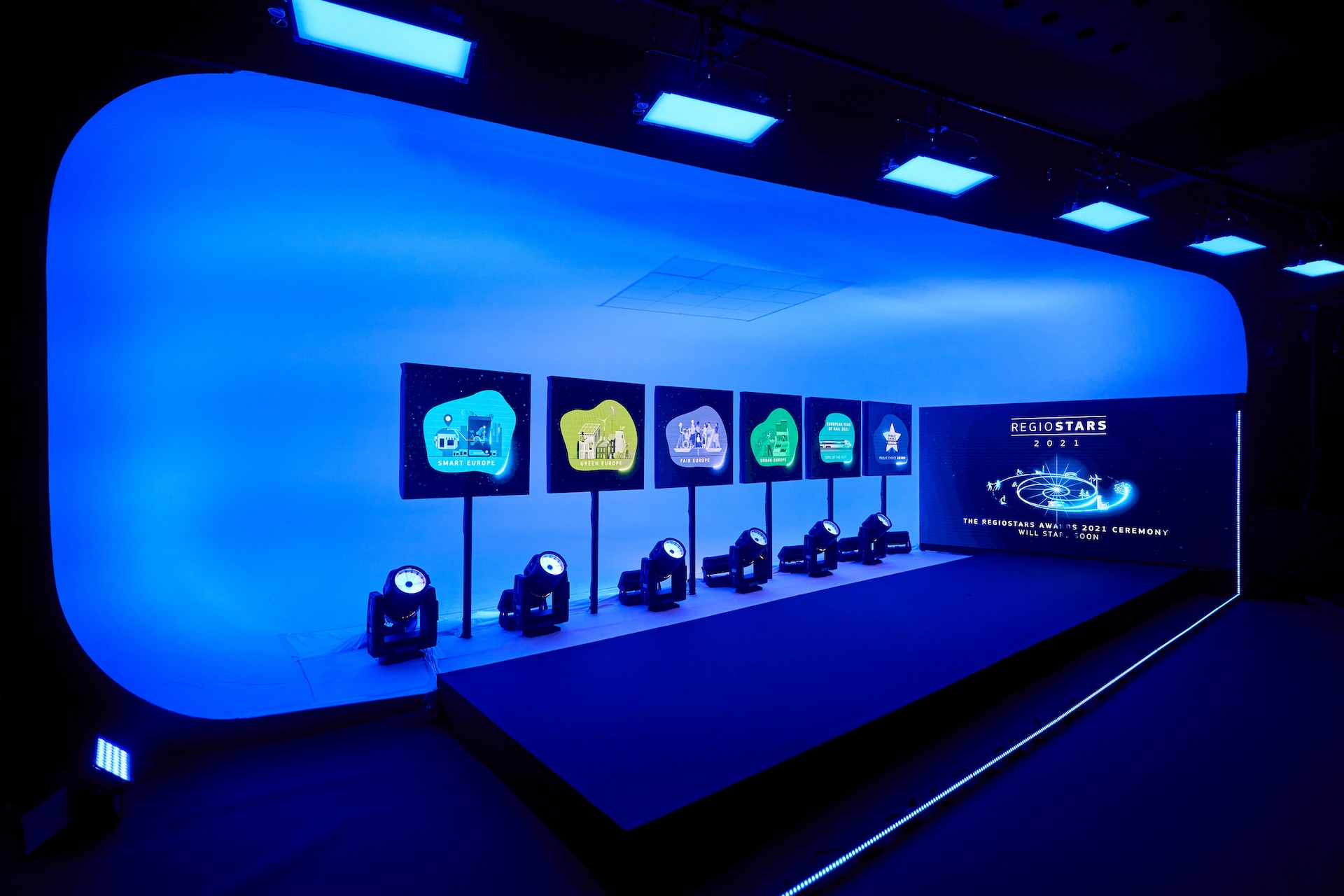 The large screen was used to insert videos, produced beforehand, of the European Commissioners at work. Each of them was supporting a category.
